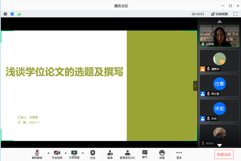 为了营造研究生良好的学术氛围,加强学术交流,树立学术榜样,提高学术能力,展示研究生科研能力和科研成果,上海外国语大学俄罗斯东欧中亚学院于2020年7月1日成功举办“研究生学术论坛-2020”。我院全体硕博士研究生参加了此次学术论坛。