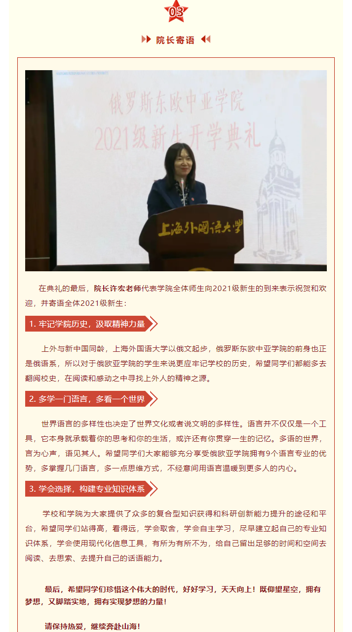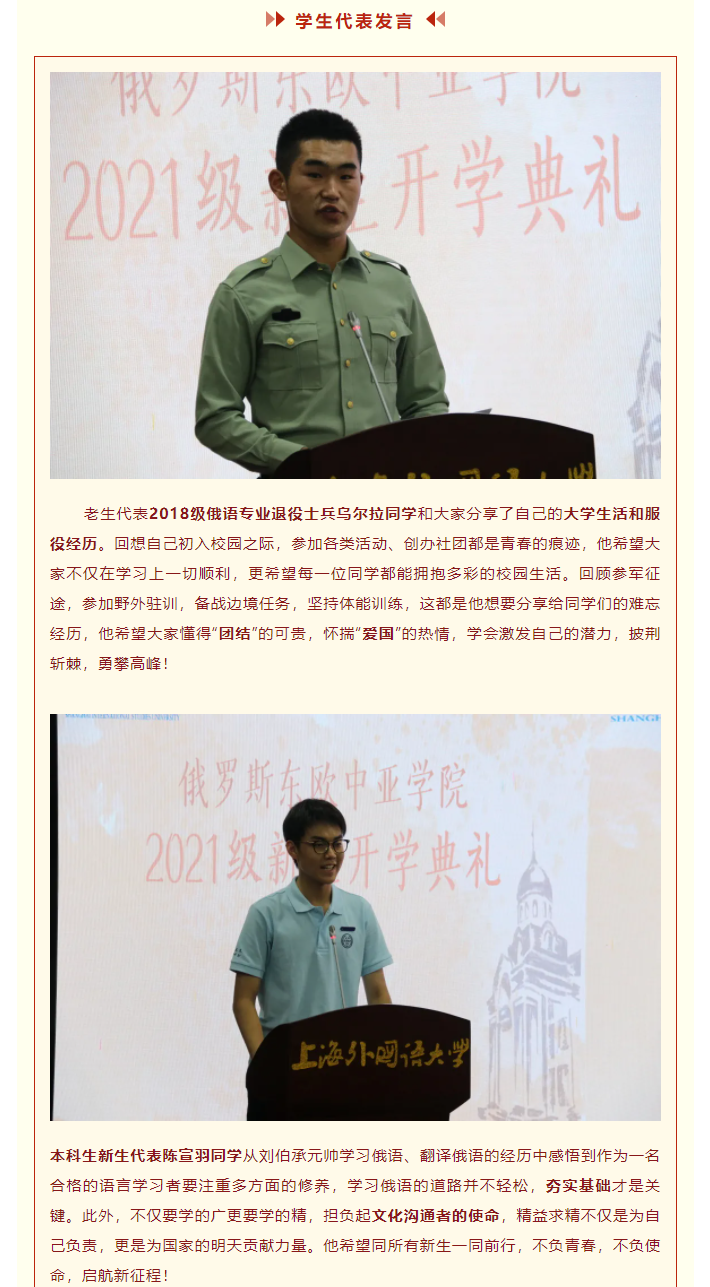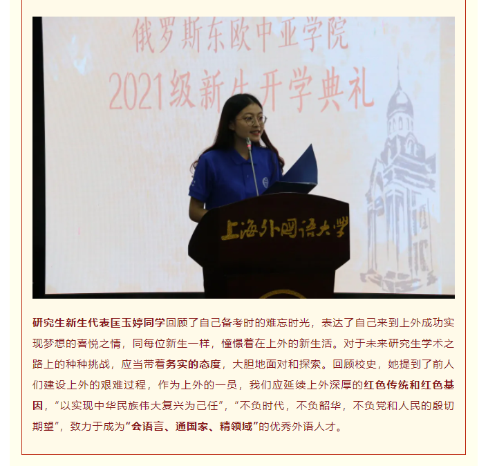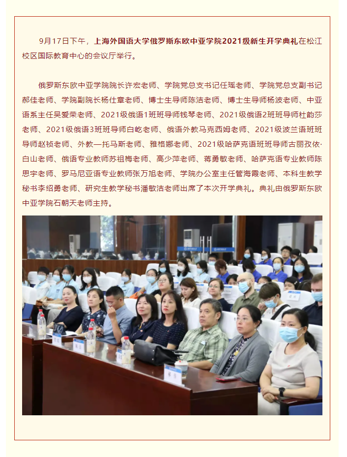 俄欧亚学院举行2021级新生开学典礼