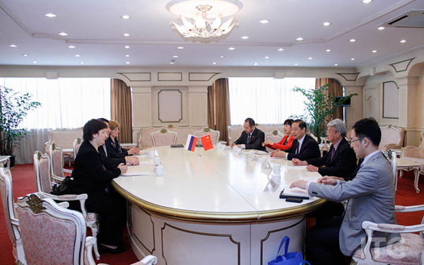 校图书馆馆长胡礼忠、俄罗斯研究中心主任汪宁、俄语系主任章自力、俄罗斯研究中心副主任杨波、对外合作交流处副处长王征等参加了会见。