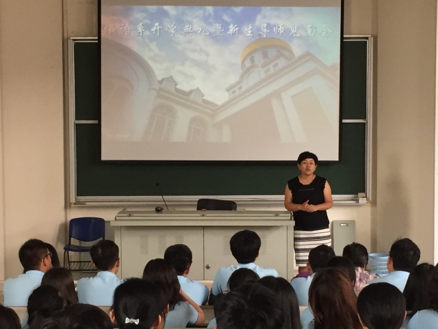 系主任许宏老师在讲话中用她多年的教育教学和学生指导经验告诉新生,大学不仅是习得知识之所,更是塑造精神之地;并且提出“多学一门语言,就是多过一种人生,多看一个世界。”,以此激励新生热爱语言、热爱专业。
