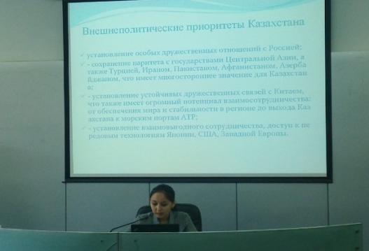 在“哈萨克斯坦历史与现状”专场讨论中,来自哈萨克斯坦的国际关系与公共事务学院外交学博士研究生高哈尔·肯热加里耶娃以“哈萨克斯坦在当代世界中的地缘政治角色”为题作了精彩的报告。在报告中,高哈尔阐述了哈萨克斯坦的对外政策方针,即与俄罗斯建立起特殊全面关系的前提下,维护与周边国家的友好关系,兼顾与美国、西欧、日本等国的双边共赢关系。高哈尔也强调了中国对于哈萨克斯坦的重要作用,不仅可以帮助维护地区稳定与和平,同时也是哈萨克抵达太平洋出海口的必经国家。高哈尔的报告引起了在场听众的兴趣,使中国学者对哈萨克斯坦的外交理念与方针有了更清晰的直观认识。