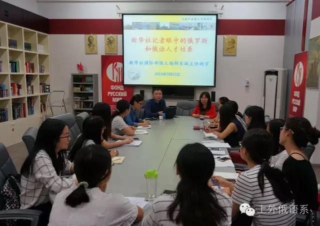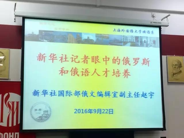 2016年9月22日,新华通讯社国际部俄文编辑室副主任赵宇受邀来到上海外国语大学俄语系为学生们做题为《新华社记者眼中的俄罗斯和俄语人才培养》的讲座。讲座由俄语系副主任许宏教授主持。