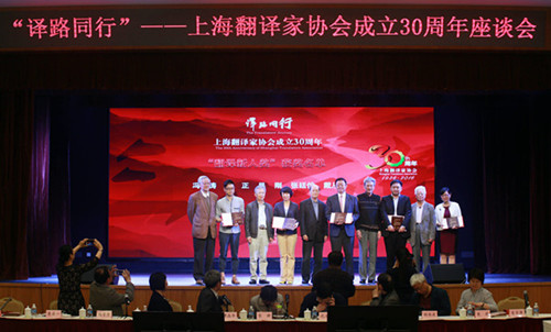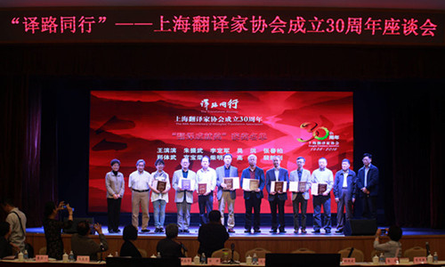 2016年5月19日下午,译路同行——上海翻译家协会成立30周年座谈会在上海文艺会堂举行,并进行了“翻译成就奖”和“翻译新人奖”表彰活动。我校学者郑体武、柴明颎获“翻译成就奖”荣誉称号,吴刚、张廷佺获“翻译新人奖”荣誉称号。