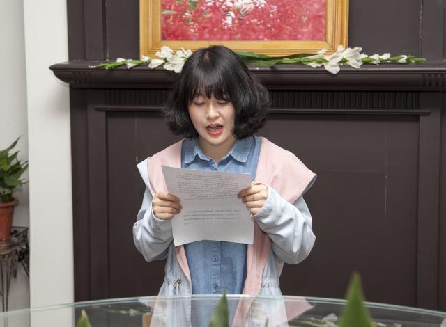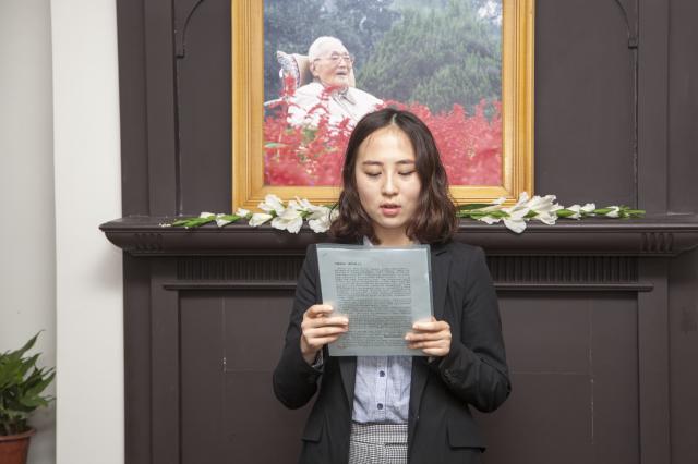 马涛、何洋洋、李志力和沈璐璐同学分别朗诵了巴金作品选段的阿拉伯语、俄语、西班牙语和日语翻译文本,表达了对巴金先生的怀念与敬意。(陈晓黎)