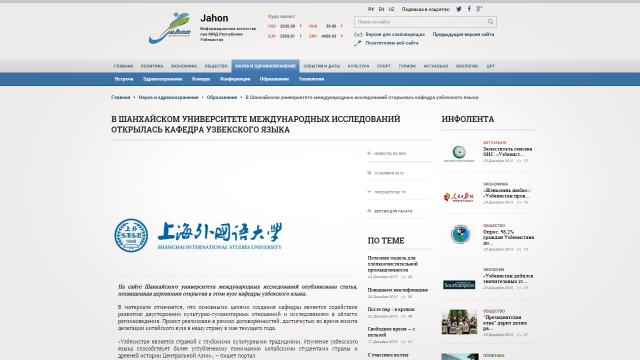 В ШУИЯ открыта кафедра узбекского языка(上外乌兹别克语课程正式开课)http://jahonnews.uz/ru/nauka_i_zdravookhranenie/166/11811/?sphrase_id=5067