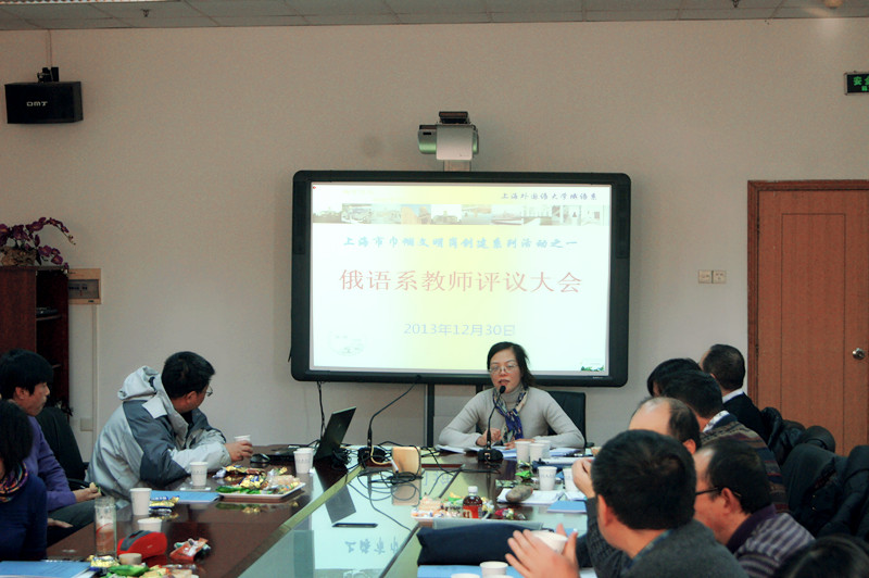 2013年12月30日下午,上海外国语大学俄语系“巾帼文明岗”教师评议大会在虹口校区逸夫图书馆604室召开。俄语系党政领导出席了大会,系全体教职工参加了会议。