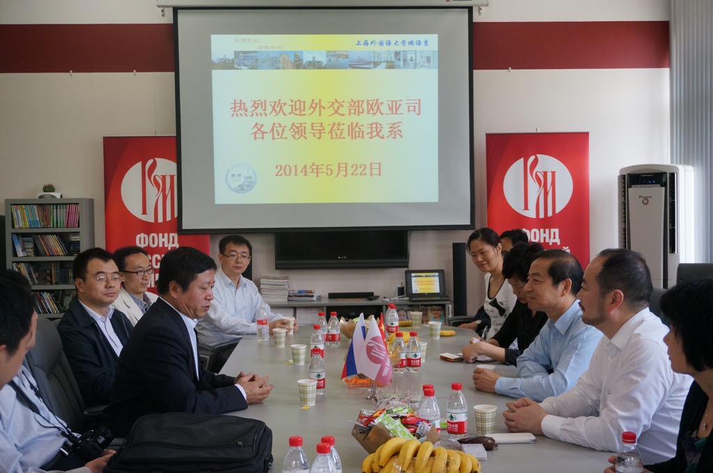 5月22日上午,外交部欧亚司司长张汉晖率欧亚司代表团一行27人到访我校松江校区。