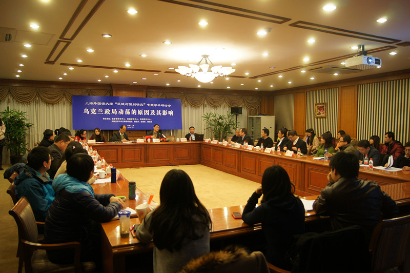 近期,乌克兰政局持续动荡成为国际社会关注的焦点。本次研讨会以“乌克兰局势动荡的原因及其影响”为主题,来自上海外国语大学俄罗斯研究中心、欧盟研究中心、英国研究中心、国际关系与外交事务研究院、德语系、法语系、俄语系二十余名专家学者,围绕乌克兰国内政治与政局动荡、大国关系与乌克兰局势的发展、各国媒体对乌克兰局势的报道等专题进行了深入的研讨。