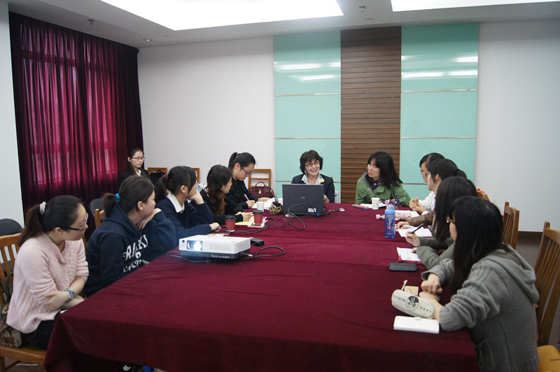 布勃诺娃教授主要和大家探讨了“世界图景”的概念、俄罗斯和西方学者对“心里语言学研究中人的‘世界图景’”问题的研究现状、他们对这一问题所持的不同观点等。伊丽娜教授指出,相对于传统语言学而已,心理语言学是一个较为年轻的学科,产生于1953年美国的布龙菲尔德学术讨论会。心理语言学关注人们如何把头脑中的意识转换为表述词,又如何用相应的表述词达到交际目的。简而言之,心理语言学关注的是大脑、意识同语言之间的关系。