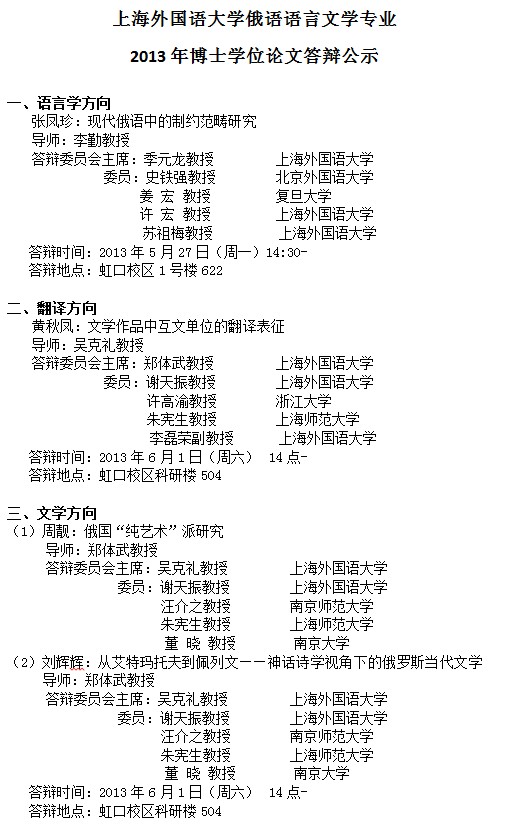【博士生】2013年博士答辩公示