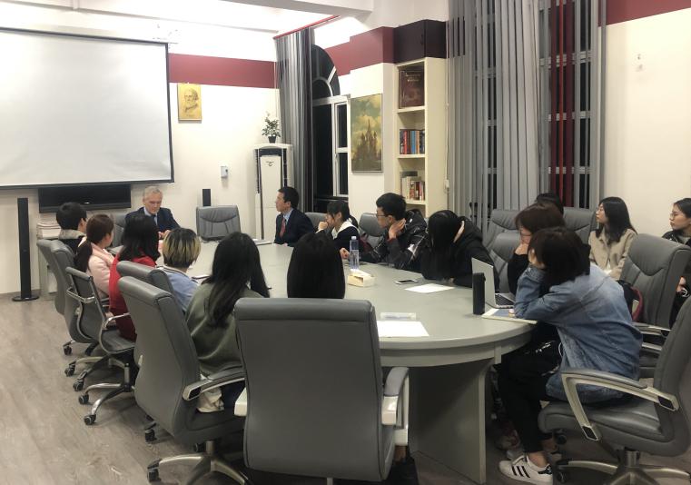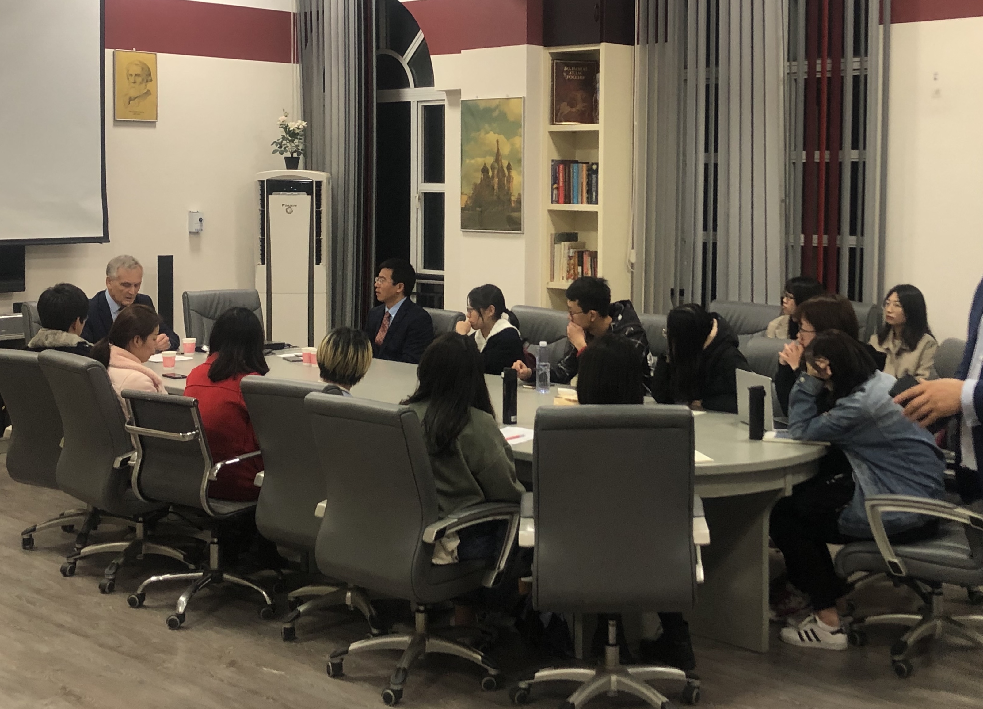 应上海外国语大学俄罗斯东欧中亚学院邀请,2019年3月28日晚间,俄罗斯作家亚·米·谢苗诺夫在学院俄语中心为广大师生举办了一场题为“当代俄罗斯文学”的学术讲座。讲座由学院副院长杨仕章教授主持。