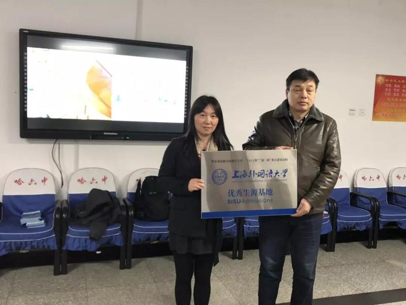 8日晚上,招生宣传组一行到哈尔滨市第六中学,与哈六中领导进行了座谈并开展了“优秀生源基地”授牌和赠书活动。校招办毕小龙老师还面向高三部分同学进行了招生宣讲活动。